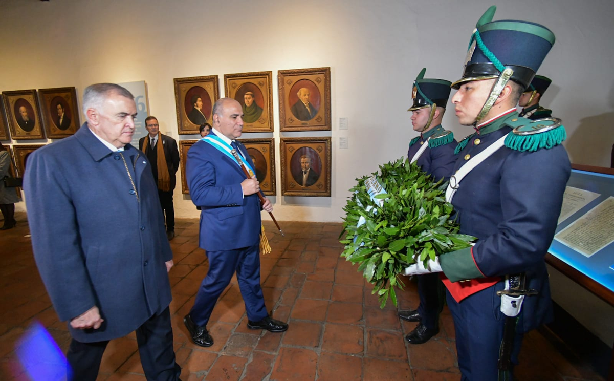 Las autoridades, acompañadas por la directora del Museo Casa Histórica, Cecilia Guerra, ingresaron al Salón de la Jura, realizaron el minuto de silencio; firmaron el libro de visitantes ilustres y entregaron la ofrenda floral en honor a los congresales.