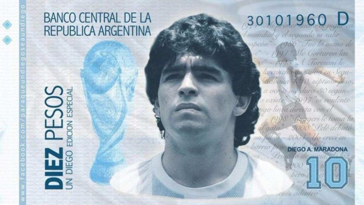 El proyecto sugiere "al Banco Central de la República Argentina que la impresión del 50%, como mínimo, del total previsto de los billetes de curso legal de un mil (1000) pesos o superior denominación a ser impresos durante el año 2021, comporten la efigie de Diego Armando Maradona de un lado y el instante del segundo gol a Inglaterra, realizado en México, el 22 de junio de 1986, del otro".