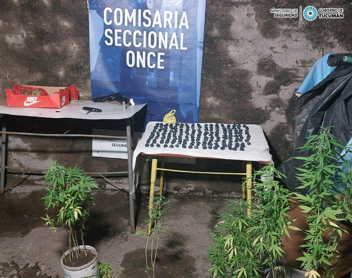 Continuando “con la requisa, los investigadores hallaron 168 bagullos de marihuana, 32 gramos de hojas de marihuana, 27 semillas del mismo vegetal; un cartucho de arma de fuego calibre de 32; y una herramienta de metal en forma de “T”, más conocida en la jerga policial como chupete. Continuando con el registro del inmueble en el en el fondo de la vivienda encontraron 17 plantas de cannabis sativa, es por ello de que se puso en conocimiento a la UFINAR y se dio intervención a la Dirección de Drogas Peligrosas Capital que estuvo a cargo del peritaje de lo hallado”, precisó el comisario principal.
