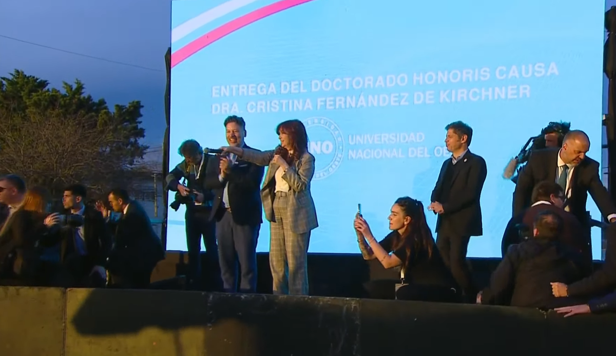 Previo a su discurso, recibió el Doctorado Honoris Causa por parte del rector de la Universidad Nacional del Oeste.