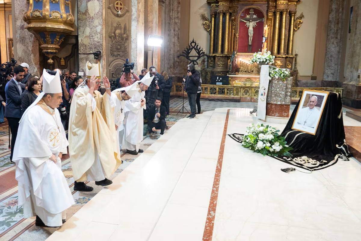 La ceremonia religiosa en el templo católico emblemático de Buenos Aires donde el Pontífice vivió y ejerció gran parte de su actividad pastoral como sacerdote, fue la primera reacción formal de la Iglesia católica tras la muerte de Jorge Bergoglio.