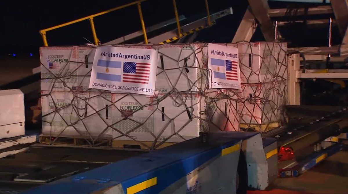 Las dosis desarrolladas por la empresa estadounidense de biotecnología Moderna llegaron en dos vuelos de Aerolíneas Argentinas, y fueron enviadas por el Gobierno de Estados Unidos como parte de las donaciones que realiza la administración del presidente Joe Biden a países en desarrollo.