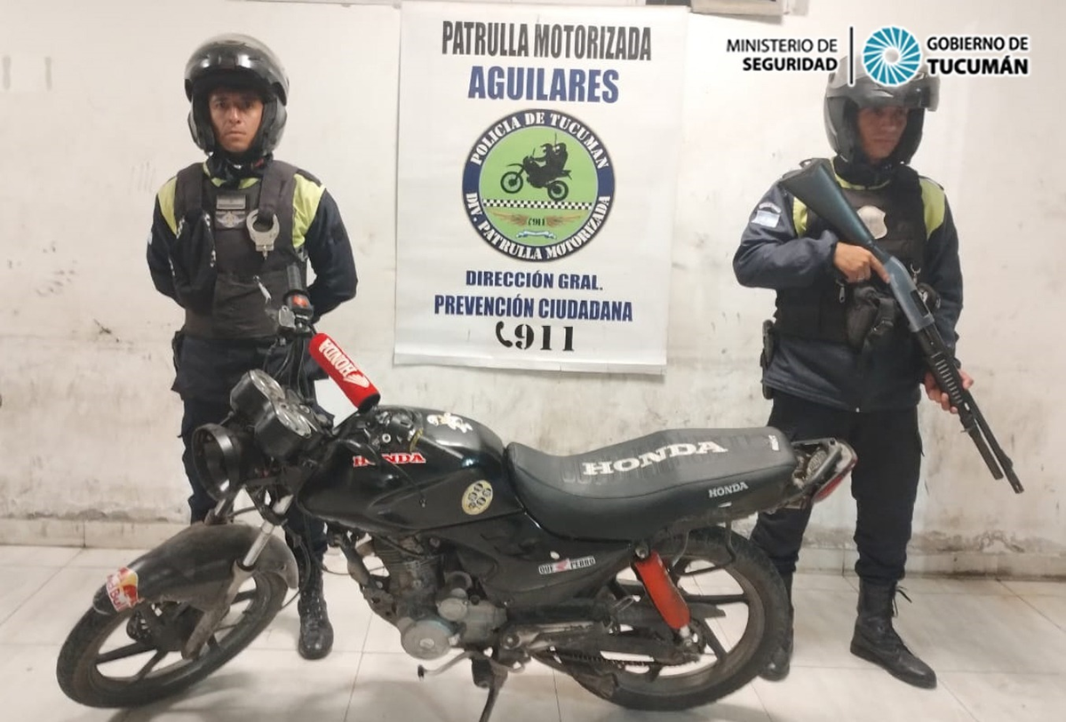 Durante la noche de este martes, efectivos de la División Patrulla Motorizada Aguilares recorrían la avenida Sarmiento cuando secuestraron una motocicleta involucrada en un hecho delictivo en la provincia de Catamarca.