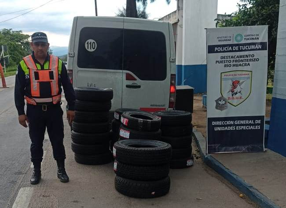 Los efectivos del Destacamento fronterizo Río Huacra, ubicado en la ruta nacional N° 38 km 662, incautaron 25 neumáticos de origen extranjero de diferentes marcas y medidas, que eran transportados de manera ilegal por un hombre que conducía una trafic, con destino a la provincia de Catamarca. Durante el control, dirigido por el jefe del Destacamento, subcomisario Mariano Molina, el hombre no tenía ningún tipo de documentación aduanera que avale el legal ingreso de las cubiertas al país.