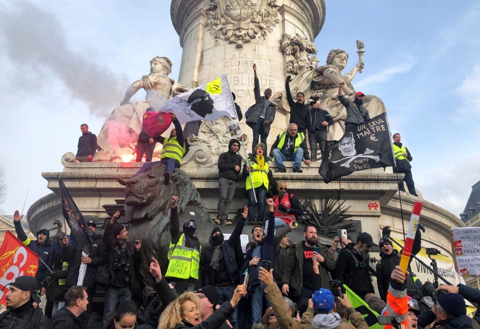 “No hay marcha atrás. Macron ya hizo demasiado daño al país”, gritaron los manifestantes.
