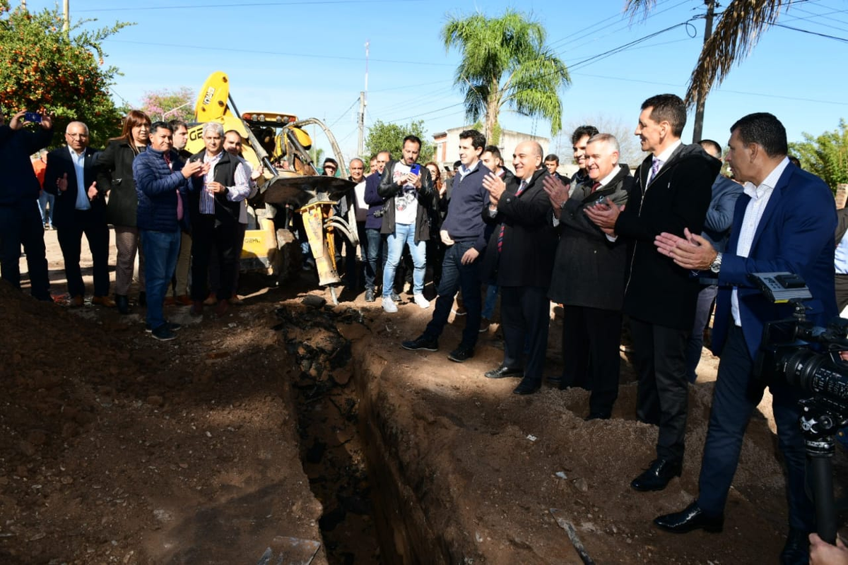Se trata de las obras de la red colectora cloacal en Burruyacú. El gobernador Jaldo estuvo acompañado por el Jefe de Gabinete Manzur y el ministro De Pedro.