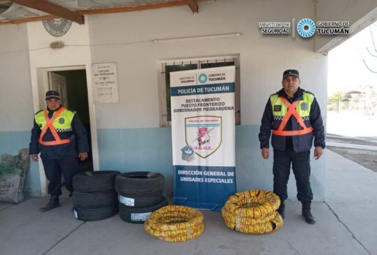 En horas de la siesta de este jueves, personal de Puesto Fronterizo Gobernador Piedrabuena detuvo la marcha de un conductor a bordo de una camioneta que se dirigía a la provincia de Santiago del Estero y registró tras la inspección del vehículo, catorce neumáticos de distintas marcas y rodados que eran trasladados sin la documentación respaldatoria.