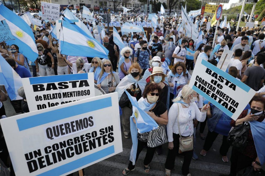En el banderazo también pudieron oírse reclamos por una mayor apertura de la cuarentena, el rechazo a la vacuna rusa contra el coronavirus Covid-19 y reclamos para que los políticos se bajen los salarios.