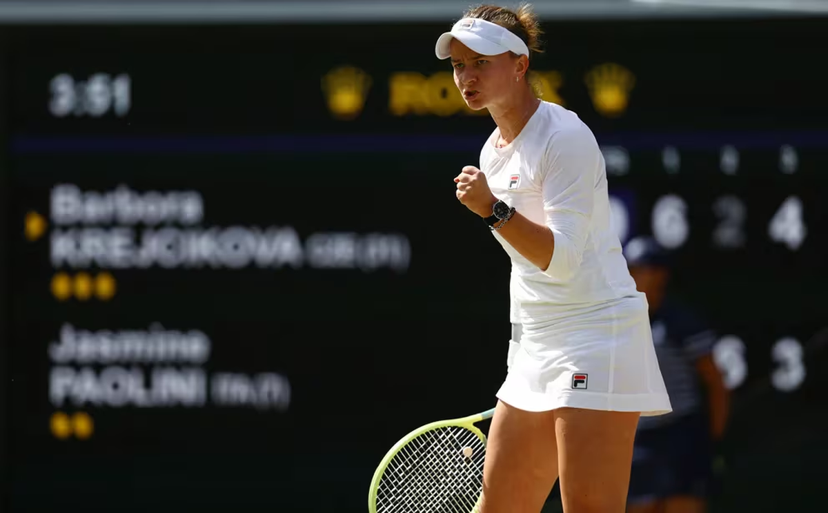 Barbora Krejcíková se consagró campeona de Wimbledon tras imponerse en una electrizante final a la italiana Jasmine Paolini con un 6-2, 2-6 y 6-4 tras casi dos horas de acción. La checa de 28 años, ubicada en el 32° lugar del ranking femenino, sumó la segunda corona de Grand Slam a su trayectoria.