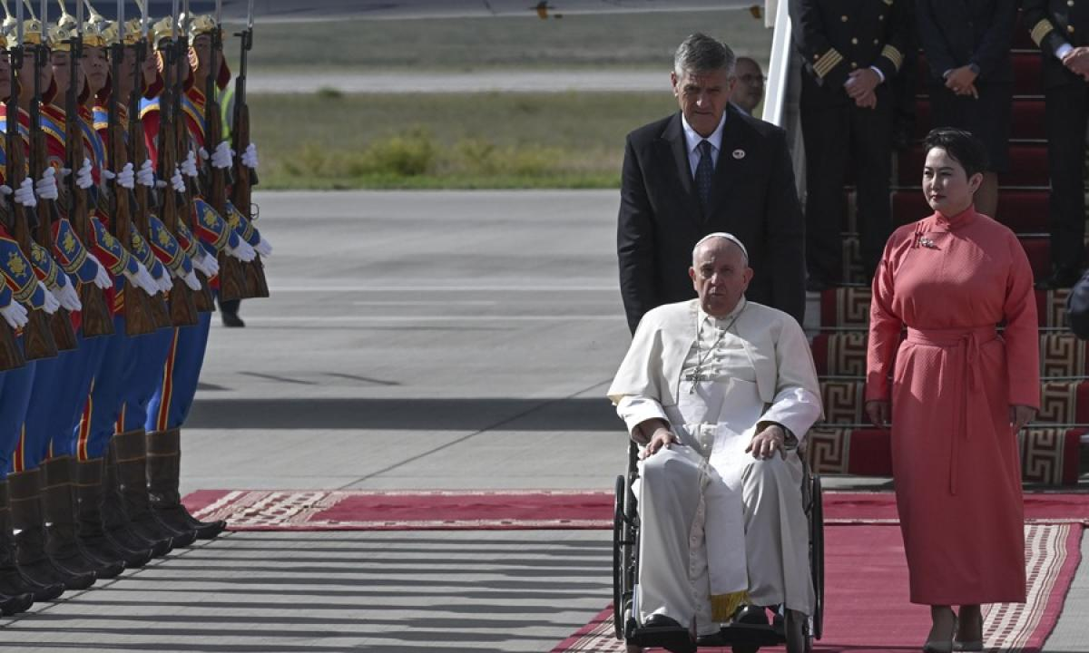El papa Francisco llegó a Mongolia para una visita de cuatro días durante la que encontrará a una comunidad católica de 1.500 personas en un país de mayoría budista y en la que también hablará al mundo de temas como la paz y el ambiente desde lo que llamó el "corazón de Asia", entre Rusia y China.