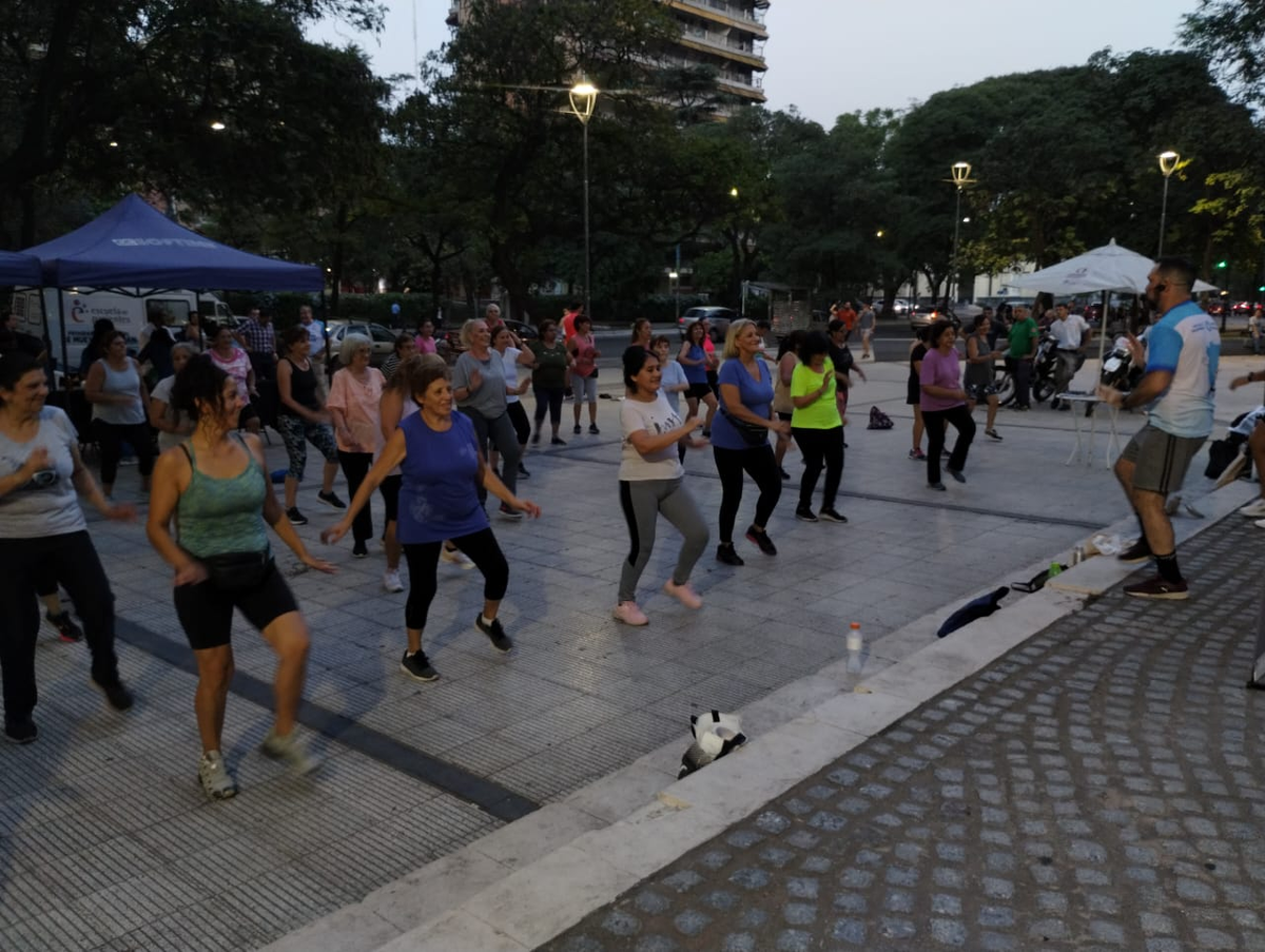 El profesor de educación física Adolfo Steinberg, encargado de las clases, contó: “Con total éxito, estamos todos los martes y jueves desde las 20 hasta las 21hs en plaza Urquiza, con esta iniciativa que comenzamos en el mes de octubre, y hoy ya podemos decir que tenemos aproximadamente más de 100 personas, siendo que es una época difícil, pero la verdad que la gente se sigue sumando, porque buscamos que sean clases de intensidad baja a intermedia, que lo hace accesible a todas las edades, y donde el único requisito para participar son las ganas de moverse, generar endorfinas y pasar un momento alegre. Además, cabe destacar que contamos siempre con la presencia del 107 motorizada, para efectuar cualquier maniobra si hay alguien que se sienta mal o sufra de alguna descompostura. Y como estamos en la lucha contra el dengue, estamos también entregando repelente a quienes asisten”.