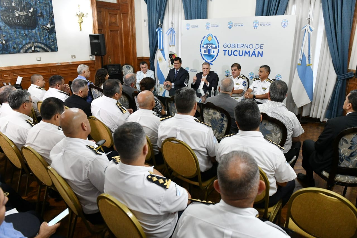 El gobernador Osvaldo Jaldo se reunió ayer en Casa de Gobierno con la Plana Mayor de la Policía de Tucumán para evaluar las acciones en materia de seguridad y planificar futuras medidas. En el encuentro participaron el ministro de Seguridad, Eugenio Agüero Gamboa; el jefe de Policía, Joaquín Girvau Olleta; y el subjefe de Policía, Roque Rodolfo Yñigo.