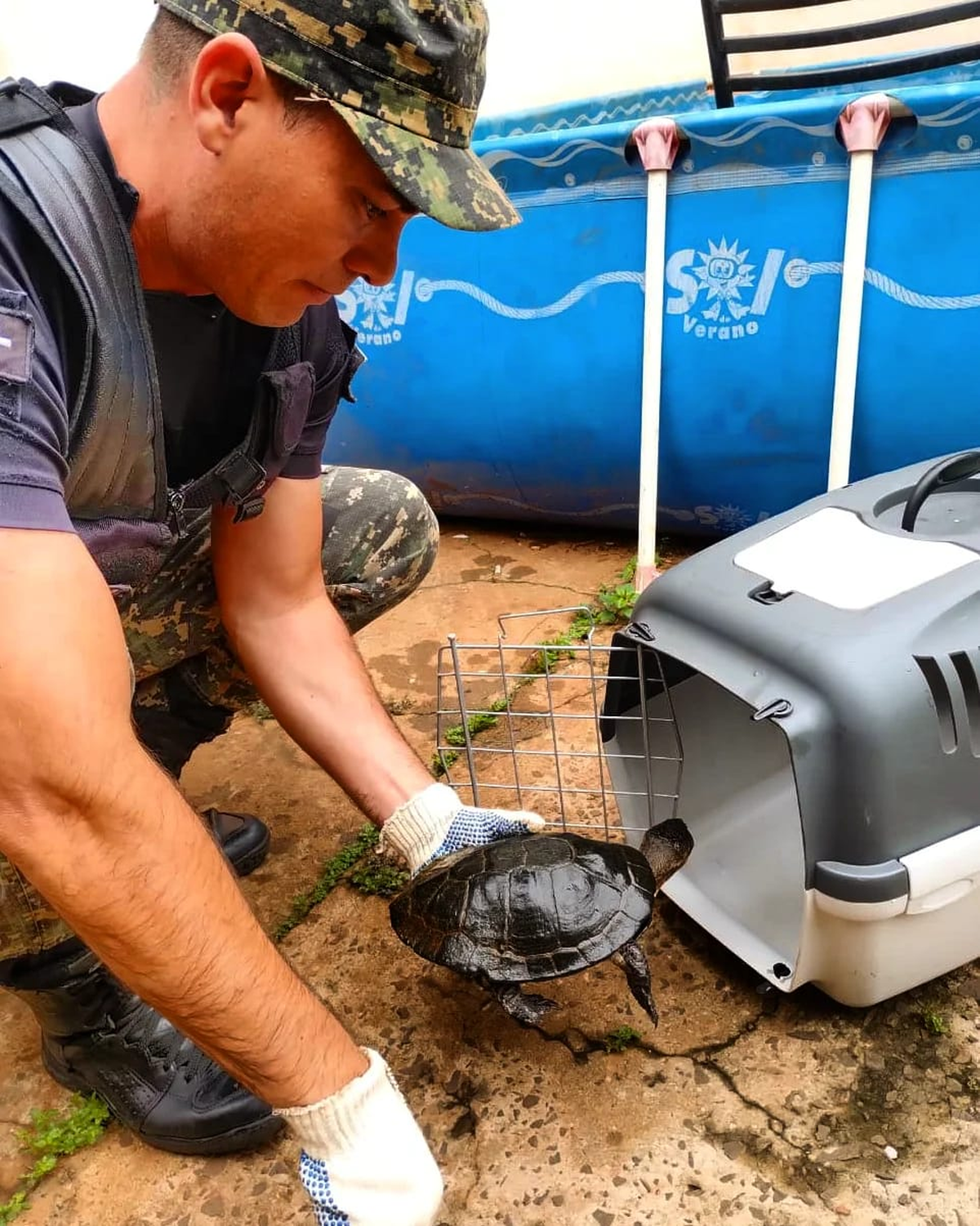Primeramente, en horas de la mañana del martes, un vecino del barrio 40 Viviendas de Garupá, alertó a los agentes en razón de que había visto una tortuga que no lograba salir de una cuneta frente a su hogar. De manera inmediata, los efectivos llegaron al lugar, la sacaron y posteriormente fue llevada hasta la Reserva El Puma de Candelaria.