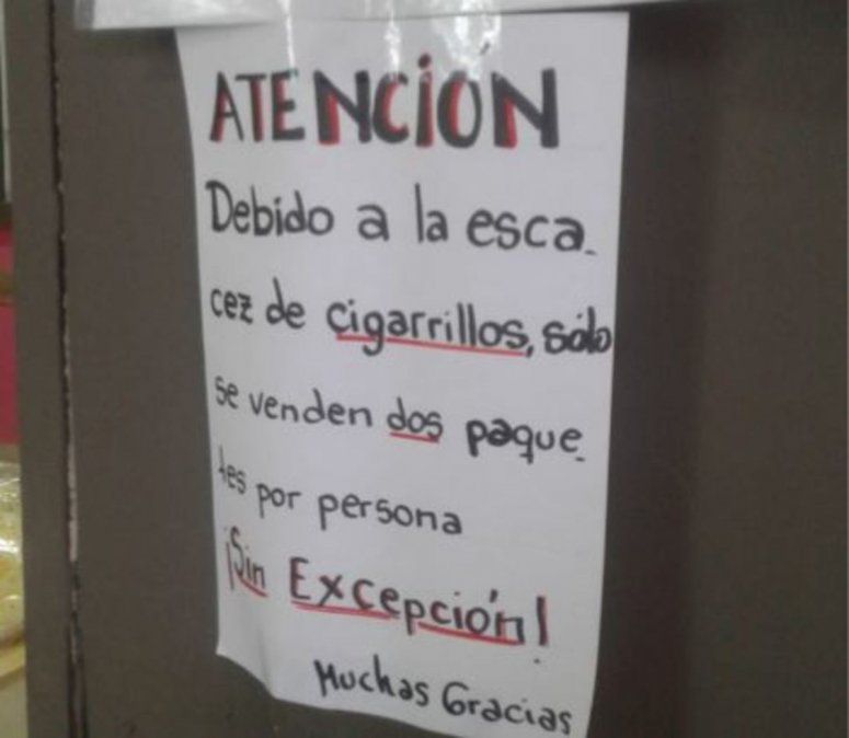 Según informaron, el cigarrillo es un producto esencial para el comerciante y un millón de personas dependen económicamente del cultivo de tabaco en la Argentina. En Tucumán, algunos kioscos comenzaron a limitar la venta de cigarrillos y sólo venden dos paquetes por persona.