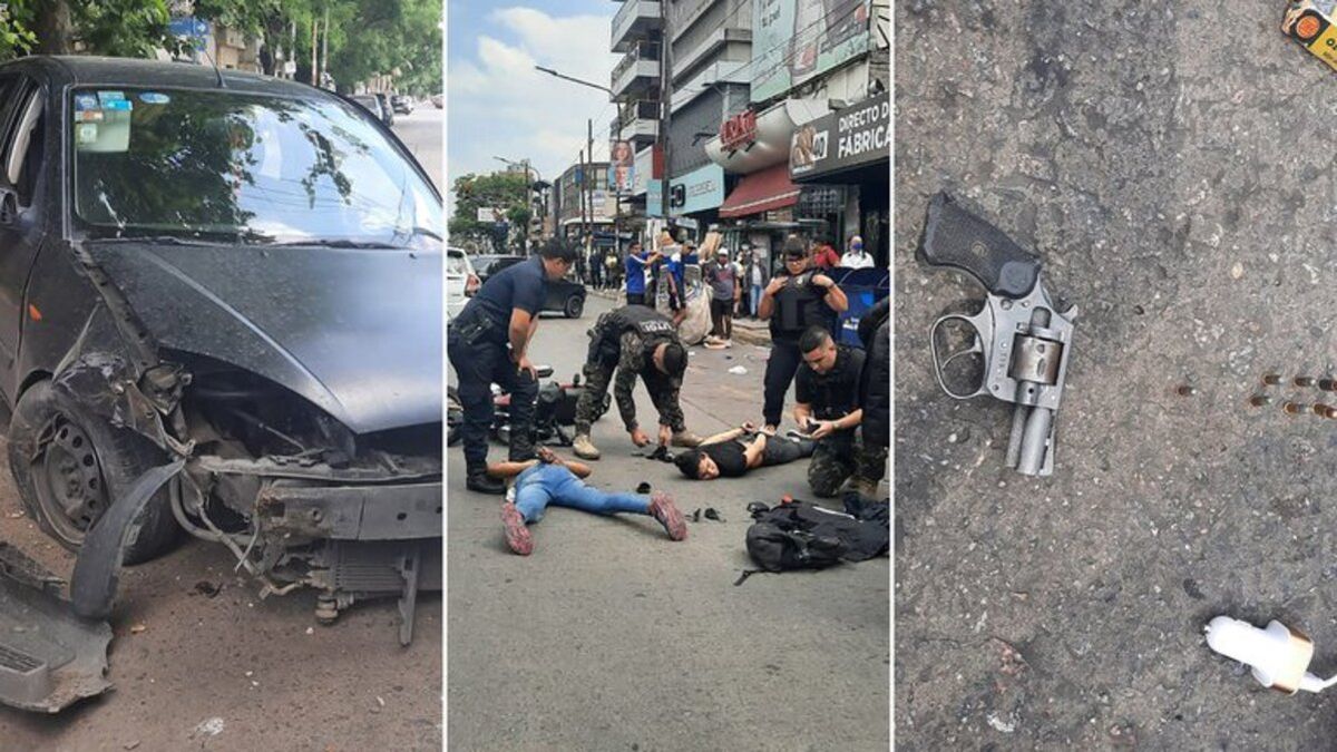Según las mismas fuentes, en medio de la fuga, los delincuentes chocaron contra un árbol en el cruce de las calles Saavedra y Alvear. Para intentar esconderse, la pareja ingresó a un supermercado con la intención de simular unas compras y cambiarse la ropa que vestían para no ser reconocidos.