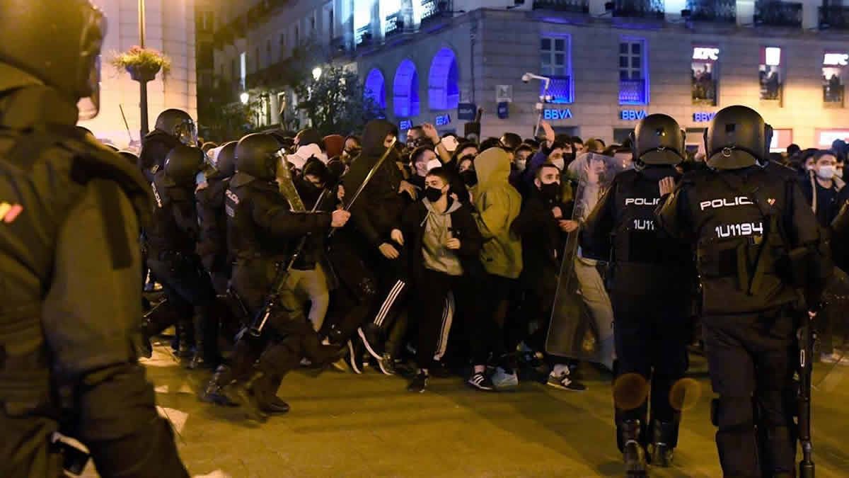 En Madrid, miles de personas, la mayoría radicales de izquierda, se enfrentaron a las fuerzas del orden con piedras y botellas, destrozaron varios vehículos y quemaron mobiliario urbano. Los manifestantes exigen la puesta en libertad del rapero, que fue condenado a nueve meses de prisión por injurias a la corona y enaltecimiento del terrorismo.