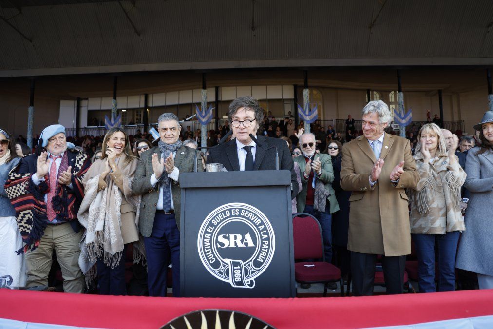 En su discurso, Milei prometió eliminar las retenciones. Foto Sociedad Rural Argentina