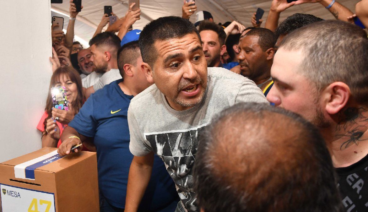 Uno de los momentos más fuertes se vivió luego de la votación de Juan Román Riquelme. El exfutbolista, que acompaña la lista de Ameal y Pergolini, se sacó fotos con los socios y luego se puso a cantar como un fanático más. "Dale Bo, Dale Bo", rugieron los hinchas mientras que saltaban. Fue tal la marea y el descontrol, que muchas personas terminaron tiradas en el piso.
