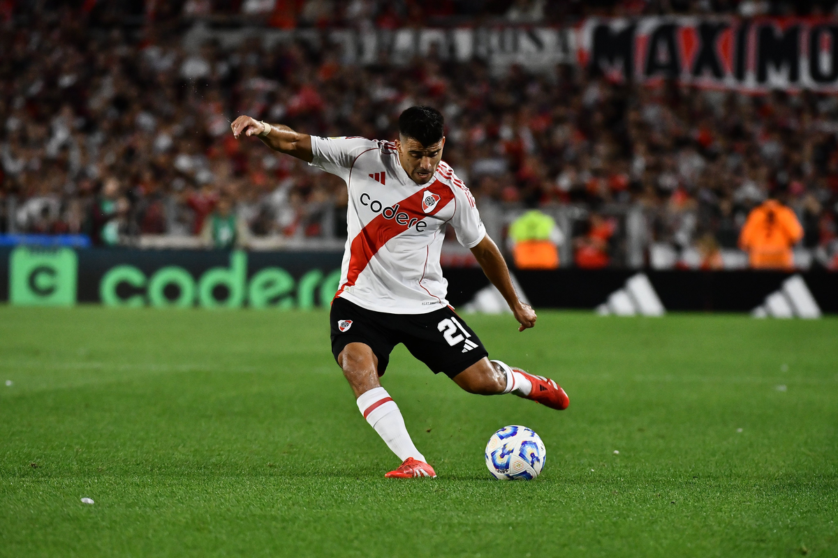 El local no tardó en gravitar cada vez más aunque también necesitó de la pelota parada para desnivelar. Franco Mastantuono amenazó con un centro que picó y pasó cerca y, a los 19, Marcos Acuña lanzó un tiro libre desde la izquierda que cayó en el área para el cabezazo de Lucas Martínez Quarta al segundo palo que dejó sin reacción a Jorge Broun.