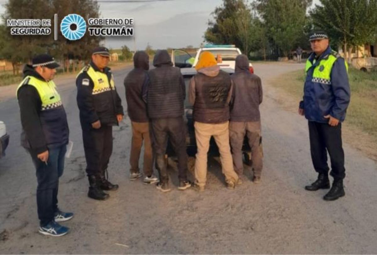 Luego, el equipo policial continuó realizando tareas investigativas por la zona, logrando observar un automóvil Fiat con 4 ocupantes, los cuales al percatarse de que eran perseguidos se dieron a la fuga, pero fueron atrapados a los pocos minutos en intersección de Ruta Provincial n° 329 y calle Chaco, lugar donde fueron aprehendidos.