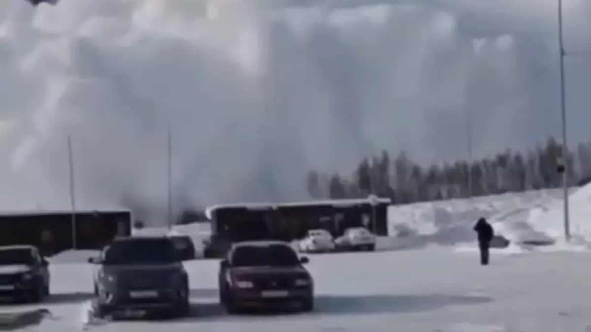 Las imágenes, que ya circulan en redes sociales, muestran cómo la nieve desciende desde la montaña y sepulta varios vehículos en el área de estacionamiento.