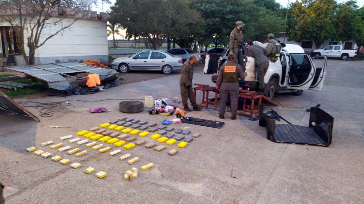 Cuando retiraron la chapa en cuestión, descubrieron que se trataba de un doble fondo que contenía paquetes rectangulares. "La prueba de campo arrojó como resultado positivo para cocaína con un peso total de 62 kilos 565 gramos", indica el reporte oficial.