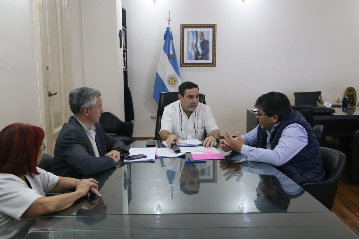 El titular del ministerio de Salud, doctor Luis Medina Ruiz, el secretario Ejecutivo Médico, doctor Miguel Ferre Conteras y la subsecretaria del Ministerio de Salud, doctora Cristina Majul, recibieron en Casa de Gobierno al responsable de la Federación de Taxis, Julio Rodríguez, para coordinar cómo trabajarán para ofrecer estudios preventivos al sector que representa.