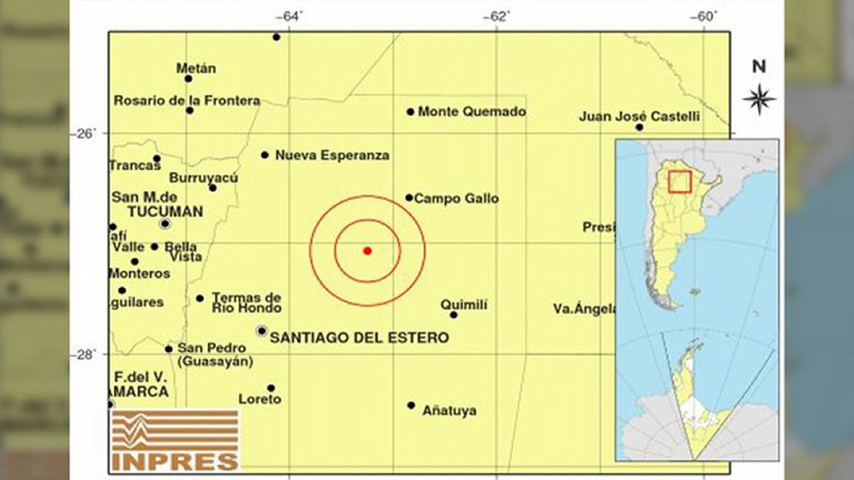 La presencia del fenómeno natural fue informada por el Instituto Nacional de Prevención Sismica (Inpres) y el epicentro tuvo lugar a 128 kilómetros al noreste de la capital santiagueña.