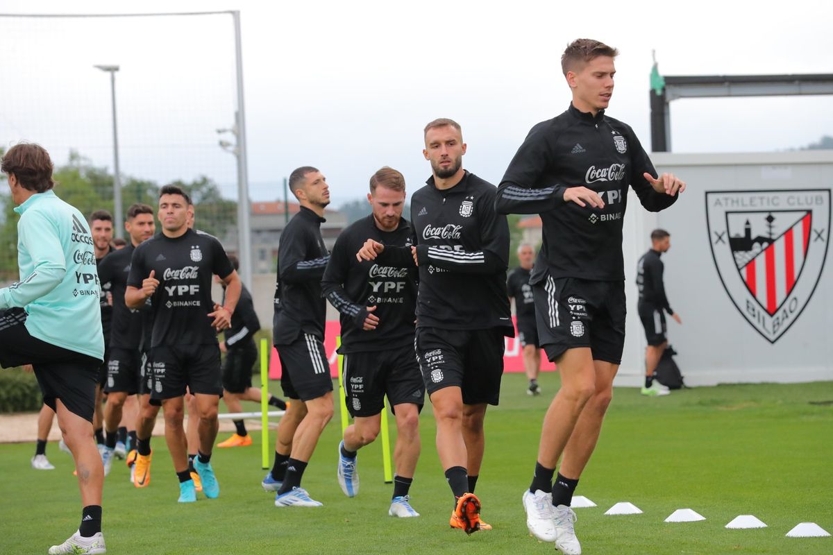 La Selección Argentina se entrena en el predio de Athletic Club. El combinado que dirige Lionel Scaloni tendrá así su última práctica antes del amistoso ante Estonia, que se jugará mañana a las 15 en cancha de Osasuna, con transmisión de TyC Sports. Para ese partido, el DT piensa un total de ocho cambios respecto del 11 que venció a Italia en la Finalissima.