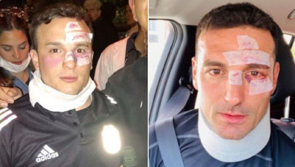 En aquel entonces se había hecho viral una selfie de Scaloni evidenciando los golpes que había sufrido, y de allí obtuvo @TiinchoDall su disfraz.