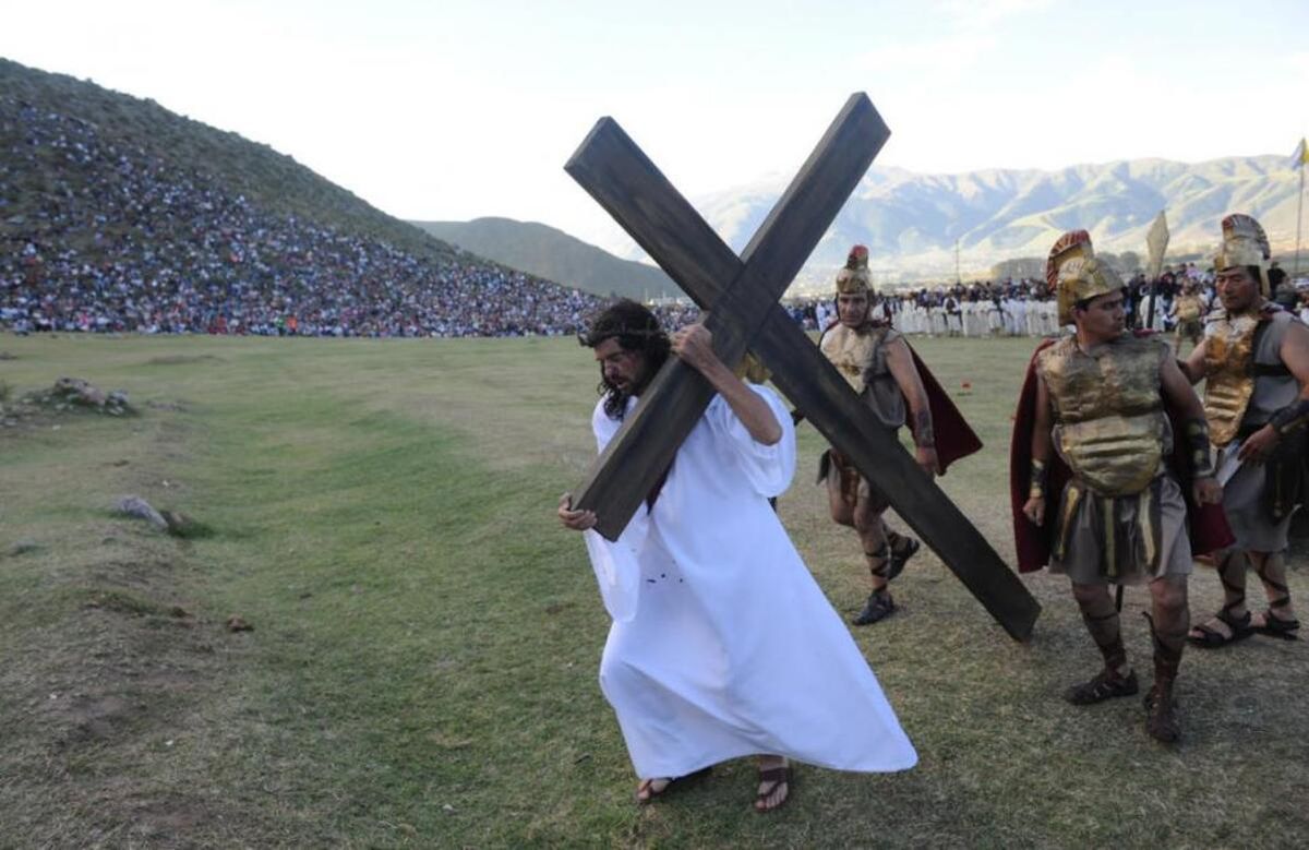 La célebre Vida y Pasión de Dios Hombre, obra artística que narra la vida de Jesús desde su nacimiento hasta su crucifixión, tendrá dos presentaciones: la obra dirigida por Carlos Kanán ofrecerá funciones viernes y sábado, a partir de las 16 en el predio Ojo de Agua con entrada libre y gratuita. La puesta en escena se despliega en un escenario natural rodeado de cerros y bellos paisajes.