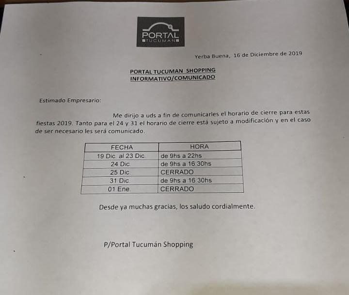 El martes 24 se trabajará hasta las 17 horas y el 31 de diciembre hasta las 16 horas. El lunes 23 se trabajará de corrido de 9 a 22 horas y el sábado habrá una hora extendida por la mañana y por la tarde al igual que el próximo viernes.