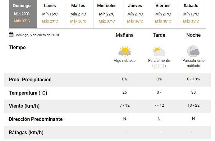 La temperatura del domingo en Tucumán tendrá un pico de 37° de máxima y una mínima de 20.