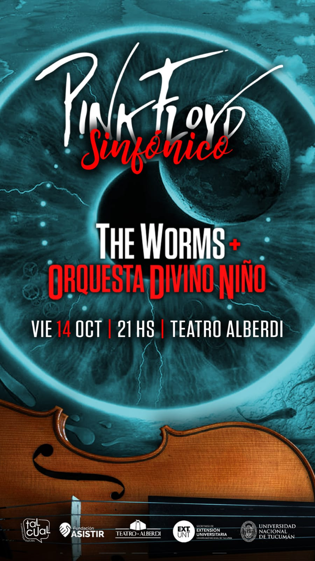 La banda tucumana The Worms y la Orquesta Divino Niño celebran 15 años de homenaje a Pink Floyd, con un concierto tributo sin precedentes que reúne a grandes músicos en un espectáculo elegante, potente y profesional, el viernes 14 de octubre a las 21hs. en el Teatro Alberdi.