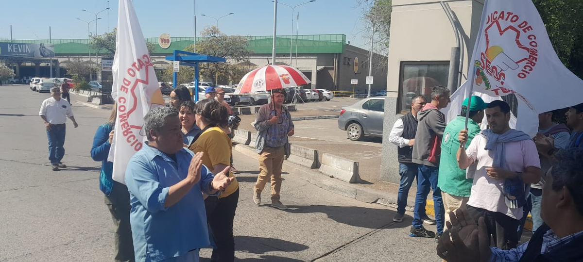 Trabajadores que desempeñan tareas de limpieza, mantenimiento u operaciones, tráfico y administración en la Terminal de Ómnibus, protestaron este jueves en uno de los ingresos por el temor de quedar sin empleo cuando finalice la concesión privada a fin de mes.