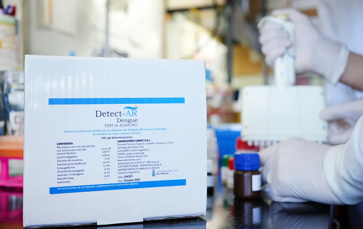 La Administración Nacional de Medicamentos, Alimentos y Tecnología Médica (ANMAT) acaba de aprobar para su comercialización el Kit Detect-AR Dengue TEST de ELISA NS1, el primer test de antígeno nacional para el diagnóstico de la enfermedad que durante el verano 2023/2024 causó en el país el mayor brote desde que se tiene registro, con 583.297 casos confirmados y 419 personas fallecidas.