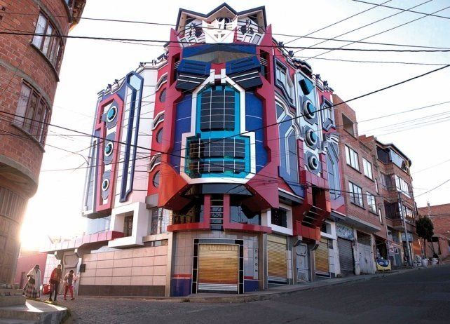 Entre edificios antiguos adornados con motivos indígenas sobresale uno pintado de rojo, azul y plateado que se asemeja al líder de los personajes de películas, dibujitos animados de los 80 y tiras cómicas, Transformers, que son furor entre los nuevos ricos de una de las ciudades más pobres de Bolivia.