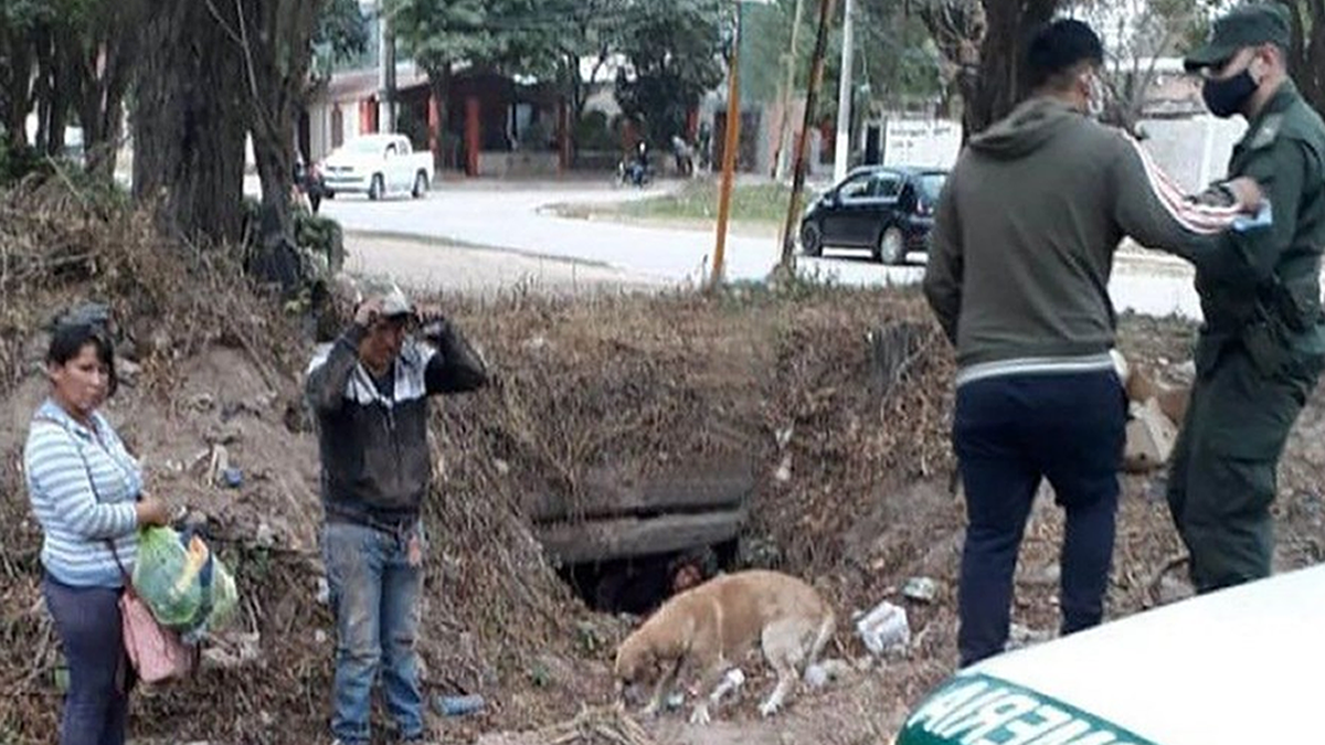Gendarmería Nacional descubrió a personas que salían de adentro de los desagües pluviales luego de atravesar el túnel de la alcantarilla que termina en la quebrada internacional entre Salvador Mazza y Yacuiba.