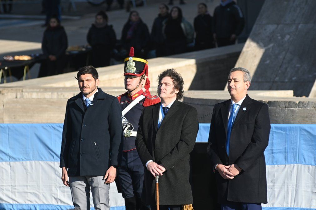 "Quiero aprovechar este día con la bandera argentina flameando en el cielo y avanzada ya la sanción de la Ley Bases y el Paquete Fiscal para convocar a las autoridades políticas, gobernadores, dirigentes de los principales partidos políticos, los expresidentes de la nación, los miembros de la honorable Corte Suprema de Justicia, los empresarios, los trabajadores y toda la ciudadanía argentina a que nos encontremos la noche del próximo 9 de Julio en Tucumán para firmar el Pacto de Mayo y finalmente empecemos juntos a dar vuelta la página de nuestra historia", señaló el presidente Javier Milei.