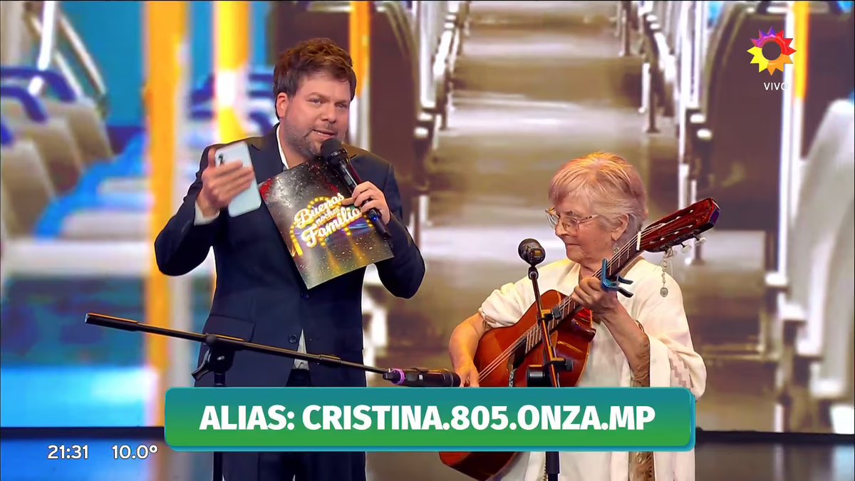 “Hoy cumple años, la podés ver en el subte, dice que es jubilada, pero toca para poder llegar a fin de mes, para el alquiler, para completar lo que le falta. Y además porque canta bárbaro y le gusta. Eso le agrego yo. Ella vino de Tucumán hace muchos años”, la presentó Guido Kaczka.
