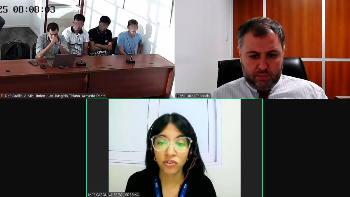 La Unidad Fiscal de Robos y Hurtos I, al mando de Diego López Ávila, acordó un convenio de juicio abreviado con los tres acusados, Ticiano Alejandro Rasgido (20), Dante Nicolás Acevedo (21) y Juan Felipe Lindon (22), y su abogado defensor. Los términos del acuerdo, que contó con la conformidad de la víctima, fueron presentados por la auxiliar de fiscal, Carolina Brito Ledesma.