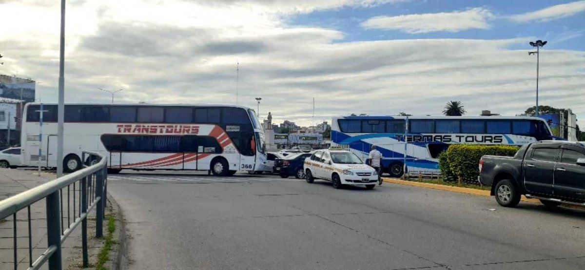Protesta de micros de larga distancia en la terminal