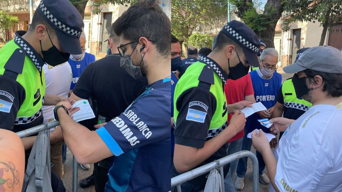 La policía, en conjunto con porteros de la institución, se encargaron de controlar que todos los hinchas cuenten con la documentación necesaria que acredite que contaban con, al menos, una dosis de alguna de las diferentes vacunas que se aplicaron en los últimos meses.