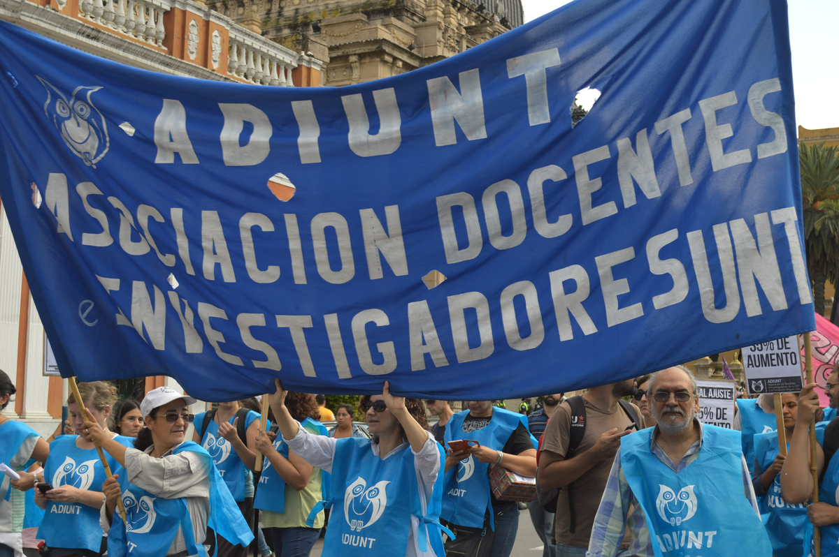 "En Tucumán hubo una vigilia en la Facultad de Filosofía y Letras que duró hasta la madrugada. Ahora se va a realizar un ruidazo y abrazo simbólico en las puertas de la facultad. Lo mismo para Ciencias Naturales y Artes", confirmó Anahí Rodríguez, secretaria general de ADIUNT.