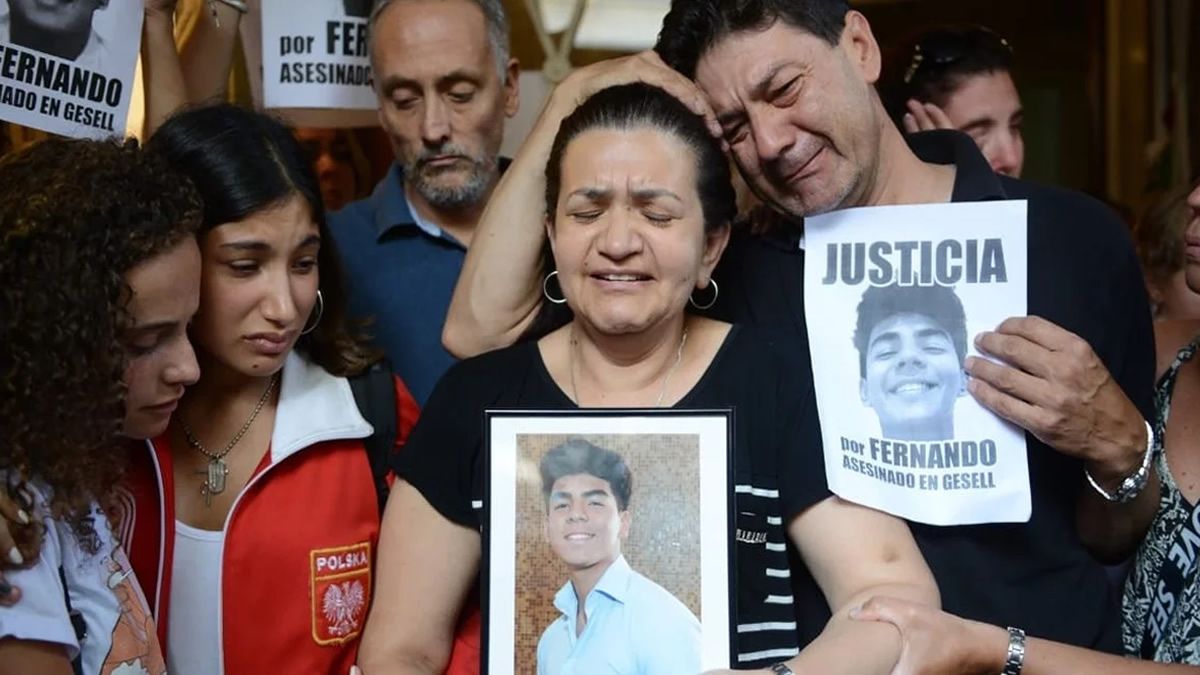 No puede terminar de decir el nombre de su hijo. A su alrededor, unas 500 personas cortan la calle y repiten con énfasis "¡Fer-nan-do! ¡Fer-nan-do!". Pero Silvino Báez no llega a la última sílaba: se quiebra antes. Apoya su mejilla al lado de la de su esposa, llora con la boca abierta, mira a los desconocidos que tiene más cerca, y no logra completar el nombre de su hijo muerto. Asesinado a golpes el sábado pasado a la madrugada a la salida de un boliche de Villa Gesell y por cuyo homicidio hay diez varones de entre 18 y 21 años imputados y detenidos.
