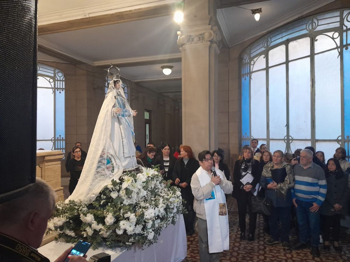 "La madre, nuestra mamá, siempre piensa en los hijos y por eso es que queremos que los hijos puedan recibirla anticipadamente y, por supuesto, con un lema muy especial 'Con María de la Merced Misioneros del Reino', por eso es que también hemos dejado una imagen para que cada una de las personas que trabajan en este lugar puedan ser misioneros, que puedan trasladar esa imagen de oficina en oficina hasta el día 24 y mucho más todavía", comentó padre Abel. L.